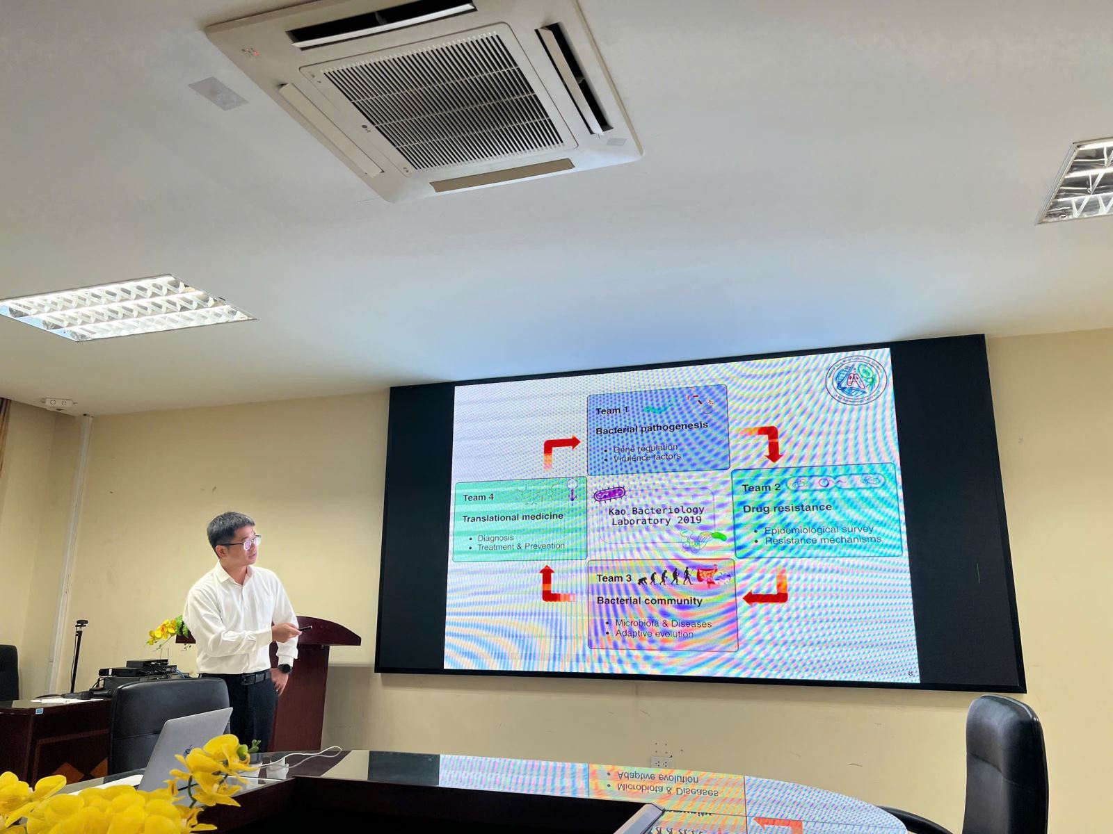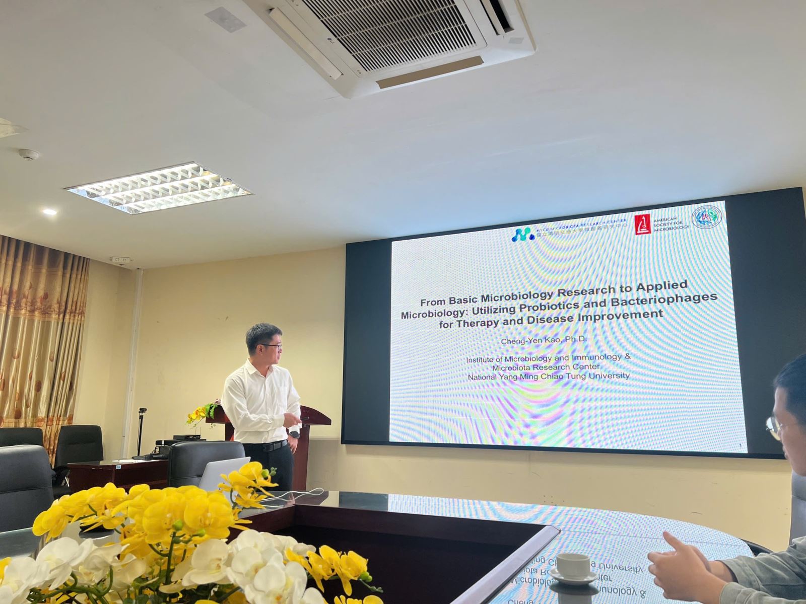 Professor Cheng-Yen Kao shared an academic talk on the topic: “From Basic Microbiology Research to Applied Microbiology: Utilizing Probiotics and Bacteriophages for Therapy and Disease Improvement.”
